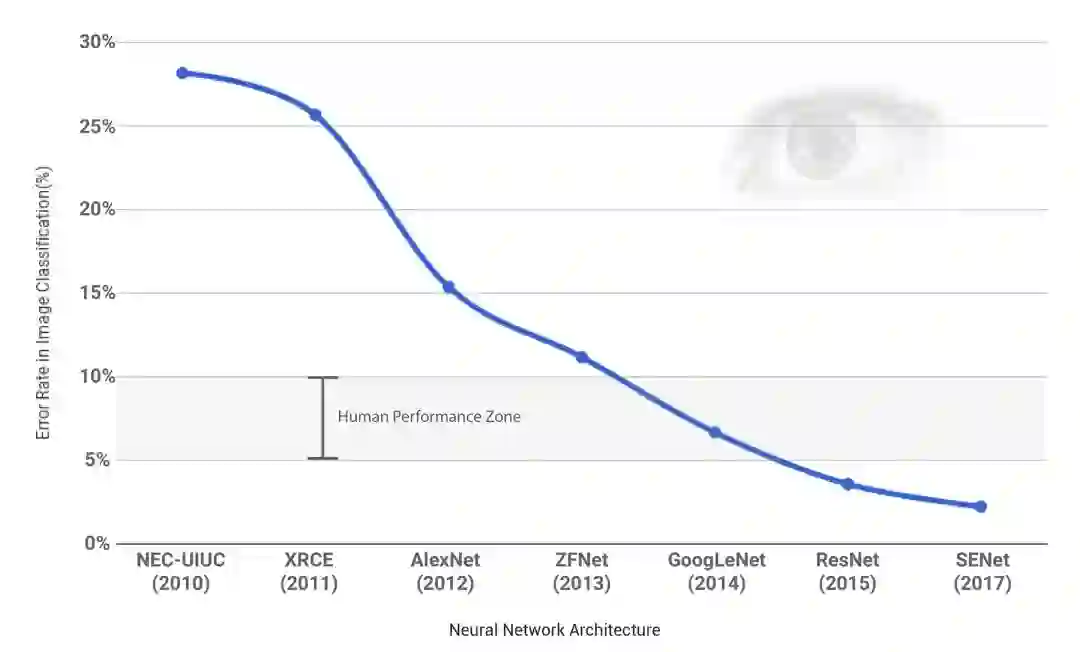 回到本文的主题,对于人类的钢铁“儿子”AI 来说,CV 和 NLP 是当前 AI 最火爆的两个领域之二,一个要解决钢铁“儿子”的视觉功能,一个要解决钢铁“儿子”的语言或认知能力,那么什么又是这个钢铁“儿子”的“巨人肩膀”和“梯子”呢?我们先来看看 CV 中的情况。
