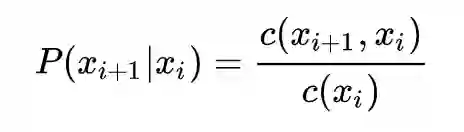 并且把词频的统计用来估计这个语言模型中的条件概率,如下: