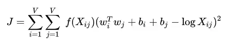 先来看看 GloVe 的损失函数: