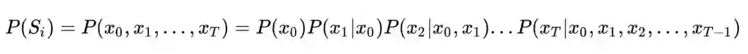 这个公式足够简单,但问题是全人类所有历史的语料这种统计显然无法实现,因此为了将这个不可能的统计任务变得可能,有人将文本不当做一个整体,而是把它拆散成一个个的词,通过每个词之间的概率关系,从而求得整个文本的概率大小。假定句子长度为 T,词用 x 表示,即: