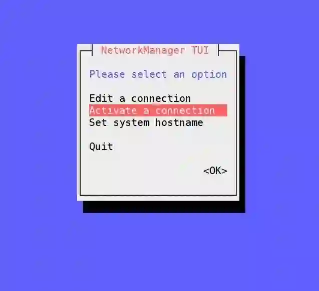 nmtui 是一个基于文本用户界面的,用于控制网络的管理器,当我们执行 nmtui 时,它将打开一个基于文本的用户界面,通过它我们可以添加、修改和删除连接。除此之外,nmtui 还可以用来设置系统的主机名。