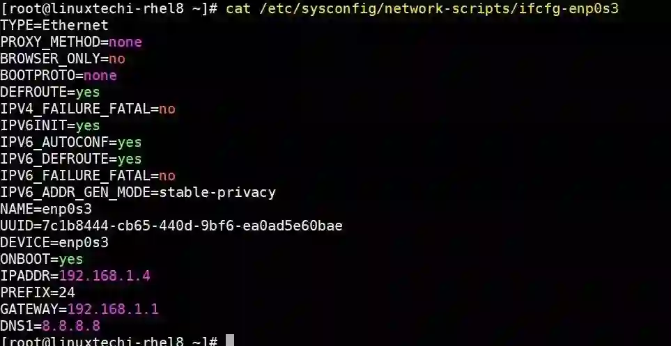 以上就是本教程的全部内容,我们已经介绍了在 RHEL 8 系统上为以太网卡配置 IPv4 地址的三种不同方法。请在下面的评论部分分享反馈和评论。