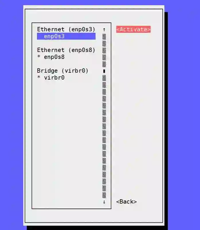 选择 “enp0s3”,选择 “Deactivate” 并点击回车,