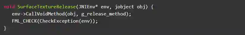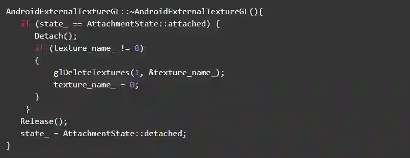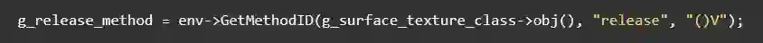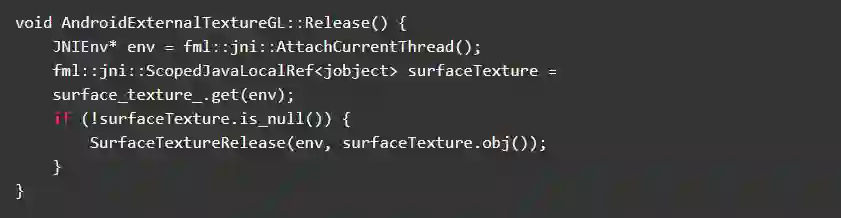 所以,为了解决该问题,我们删除了SurfaceTextureRegistry的release方法里面SufaceTexture的释放逻辑,并且将SurfaceTexture的释放,放到AndroidExternalTextureGL析构阶段,通过Jni调用java方法实现资源释放。