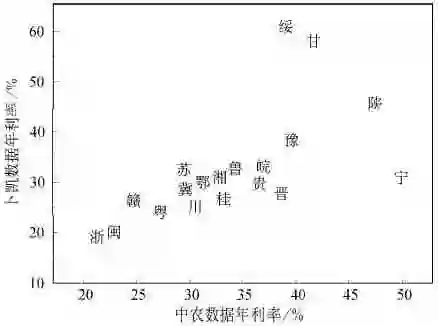 图1 中农数据和卜凯数据的年利率比较