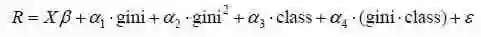 其中,X为控制变量,包括收入、借贷规模、影响契约执行的制度环境等影响补偿利率的常规因素;gini为基尼系数,是对贫富分化的衡量。如前所述,在控制了借贷规模的条件下,它的作用主要体现在提高借款穷人的补偿利率和增强放款富人的市场势力上,所以应该会对利率有正向影响。需要注意的是,由于贫富分化对补偿利率的边际影响不太可能是递减的,它与市场势力形如式(5)的交织将导致正的平方项。这时,倘若α2不显著,那么,或是垄断势力不显著,或是双方从规模效应中的收益抵消了垄断的影响。无论如何,这都意味着高利贷与贫富分化的正反馈或恶性循环被打破,高利贷也就不再是贫困陷阱的“罪魁祸首”。考虑到在市场势力之外,“剥削阶级”还可能运用超经济手段,为了对此进行检验,回归式中用class代表向“剥削阶级”借款的比重,引入了放款人的阶级成分。由于超经济手段的运用受制于经济条件,故同时引入gini和class的交叉项。最后一项为随机扰动,诸如偏好差异、对均衡的偏离等因素都可以归入其中。