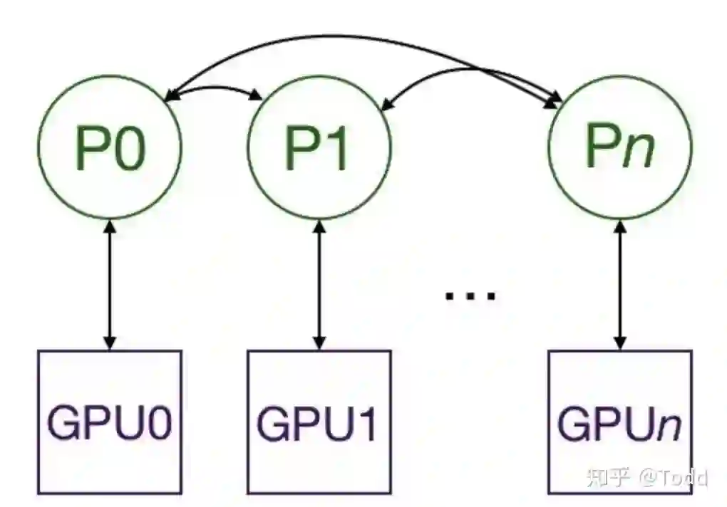 在每个训练批次(batch)中,因为模型的权重都是在 一个进程上先算出来 然后再把他们分发到每个GPU上,所以网络通信就成为了一个瓶颈,而GPU使用率也通常很低。