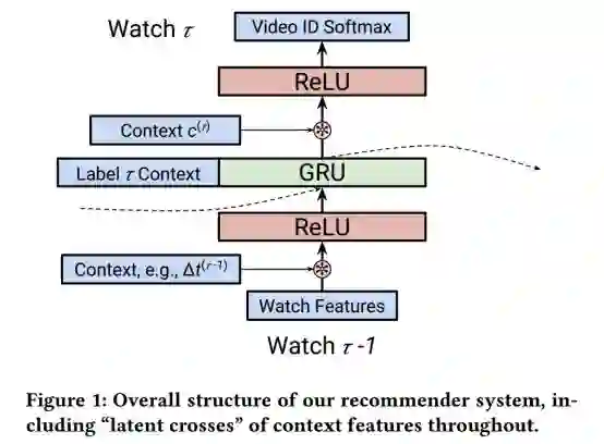 推荐系统的成功往往取决于它们理解和利用推荐需求的上下文的能力。研究的重点集中在时间、位置、交互和大量其他上下文特征如何影响推荐。然而,在使用深度神经网络进行推荐时,研究人员往往忽略这些上下文,或者将它们作为普通特征纳入模型中。本文研究了如何有效地处理神经推荐系统中的上下文数据,首先对前馈推荐中的传统语境特征进行了实证分析,并证明了这种方法在捕捉常见特征交叉时效率低下,因此作者设计了一种state-of-the-art 的RNN推荐系统.。文中首先描述了作者在YouTube上使用的基于RNN的推荐系统,接着提出了一种易于使用的“潜在交叉”技术,通过先嵌入上下文特征,然后执行上下文嵌入模型隐藏状态的元素乘积,将上下文数据合并到RNN中。作者在多个实验环境中使用这种潜在交叉技术,证明其有效性。