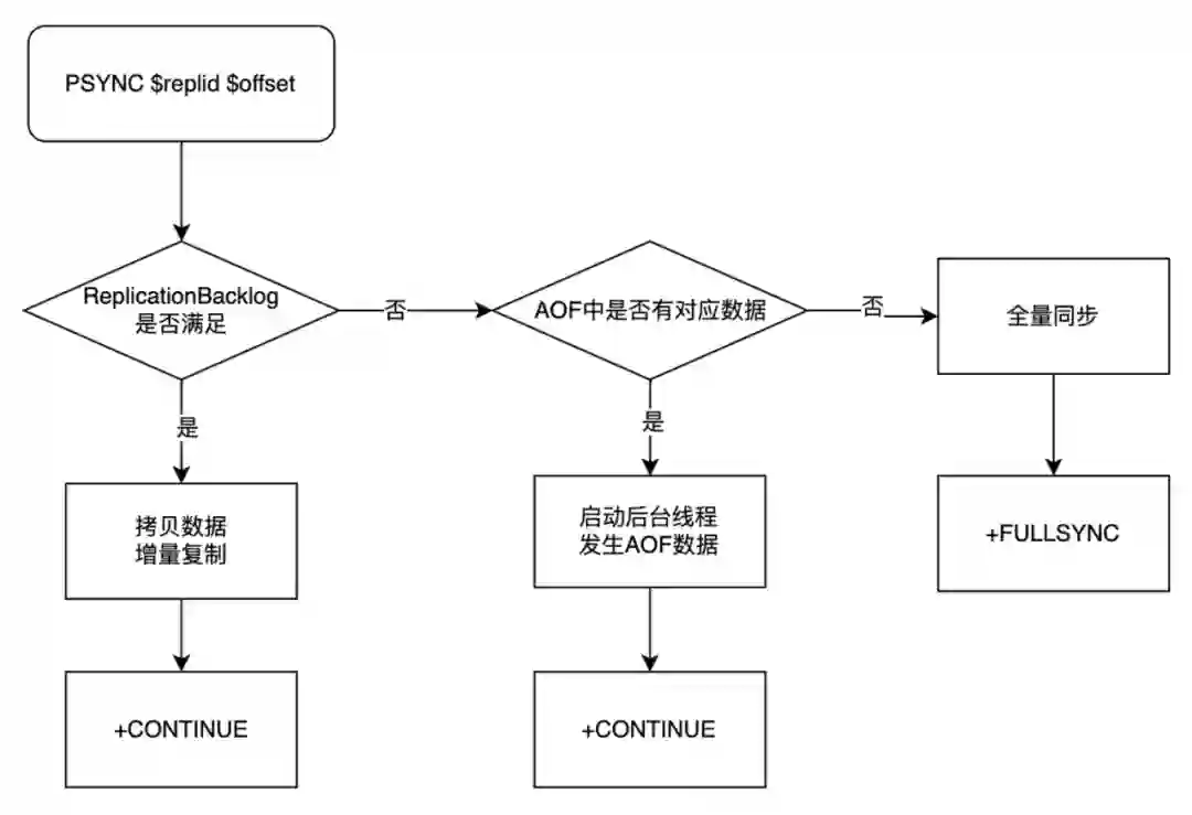 在 PSYNC1 中它又是只是校验,offset 是不是在 Backlog 里,它现在多了一个校验,其实主要是判断它的复制历史是否一样的。如果它的 Replid 是一致的,比如说之前的 Runid 是一样的,自然可以来进行部分重同步的尝试。如果没有,接下来也是 PSYNC 中最重要的一个改变,它就会看一下是否和自己上一次的 Replid 一样,也就是说与 Replid2 一样。如果一样的话,再看一下这个 offset 是不是在上一次的 second_replid_offset 中,如果在这之中,也可以进行增量同步。这里说一下为什么要看上一次的 Replid_offset,这也是大家非常容易出错的地方。
