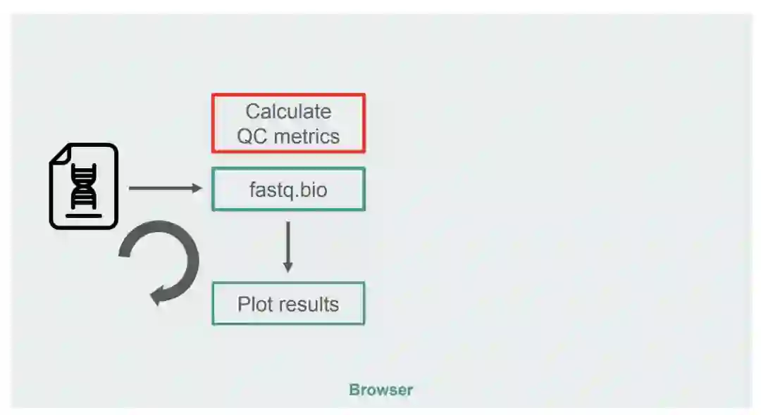 最初版本的 fastq.bio 要求用户从本地选择一个 FASTQ 文件,这个工具借助 File 对象(使用了 FileReader API)从文件的随机位置读取一小块数据,然后我们使用 JavaScript 对这个数据库执行基本的字符串操作,并计算相关的指标。这个指标可以帮助我们跟踪一个 DNA 片段中有多少 A、C、G 和 T。