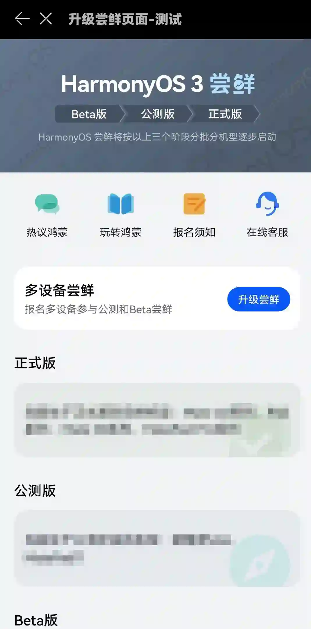 前不久有博主发现,华为鸿蒙 OS 3.0 的内测报名页面已在进行测试,信息显示,鸿蒙 OS 3.0 尝鲜将分为 Beta 版、公测版、正式版三个阶段,3.0 尝鲜将按以上三个阶段分批分机型逐步启动。