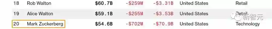 外媒彭博社搞了一个亿万富翁指数榜(Bloomberg Billionaires Index),榜单显示,小扎的财富今年已经减少了710亿美元,是彭博富豪榜上资产缩水最多的人。