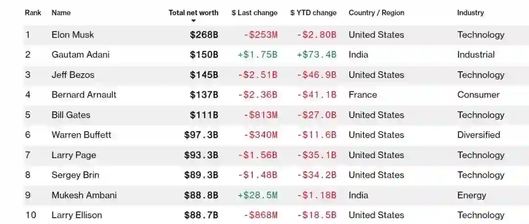 经济寒冬来了,全世界的富豪们都不好过。