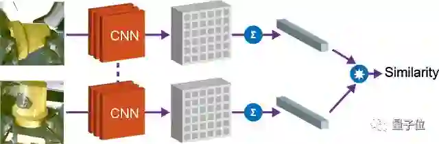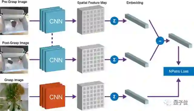 这个差值向量和被抓取对象的相应向量表征,通过N配对目标(N-pairs object)归于等价。