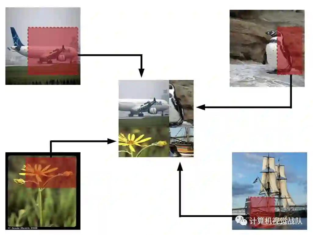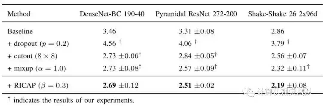 RICAP与裁剪、混淆和标签平滑共享概念,并有可能克服它们的缺点。剪裁掩盖了图像的一个子区域,而RICAP产生了一个图像的子区域。在每个训练步骤中,两者都会改变图像的明显特征。然而,遮掩只会减少每个样本中可用特征的数量。相反,提出的RICAP补丁图像,因此修补图像的整个区域产生了有助于培训的特性。