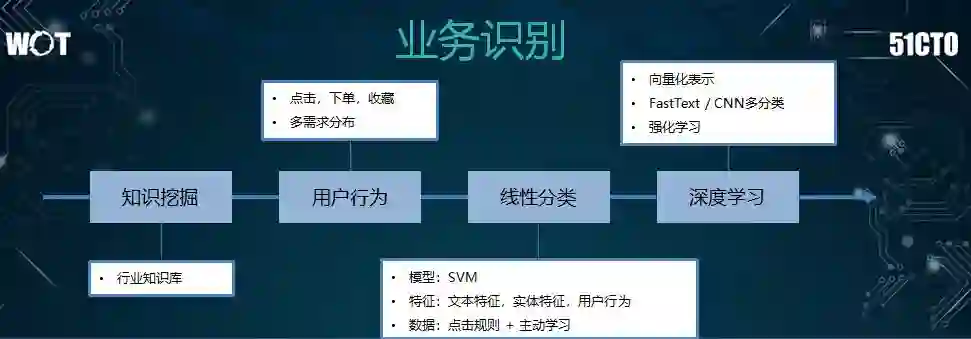 此时我们自然而然地想到了使用各种机器学习模型,对文本和用户行进行向量化,通过诸如 FastText 或 CNN 之类的分类模型,对用户的各种特征予以分类,从而得到用户的意图,并解决泛化的问题。
