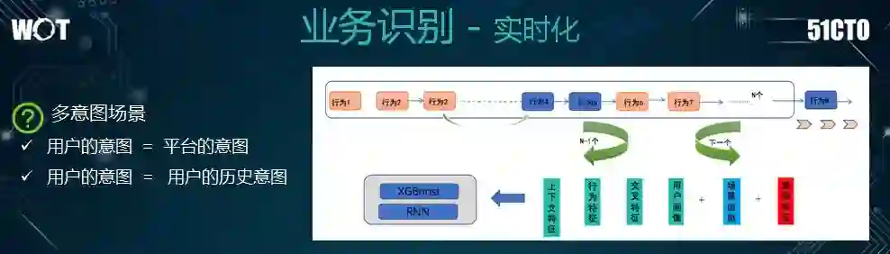 另外,用户的历史意图是否会影响他的实时意图呢?面对此类时序化的问题,我们需要基于此前他在我们系统中发生过的搜索行为,采用大数据统计来提取相关特征,利用 RNN 模型去预测他的下一个行为。