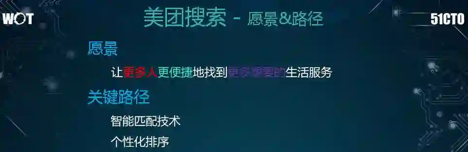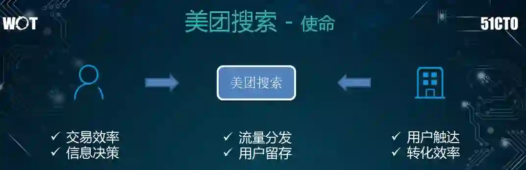 作为美团搜索的平台,我们的使命是把用户流量进行高效的分发,并且在分发内容的基础上尽量提升他们的搜索体验。