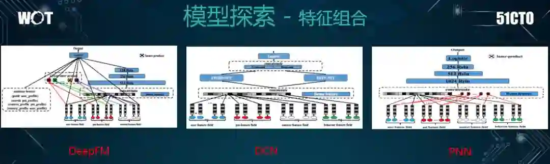 如上图所示,在特征组合方面,我们尝试了一些知名的模型。其实它们之间并无明显的优劣势,就看哪个更适合业务项目罢了。