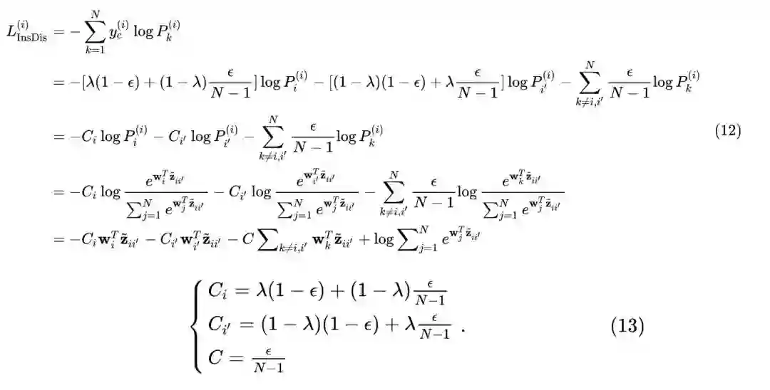 式中, 代表 smoothing factor,默认设为0.1。至此,Instance discrimination 任务的损失函数从1式变为11式:
