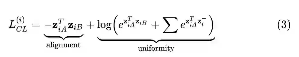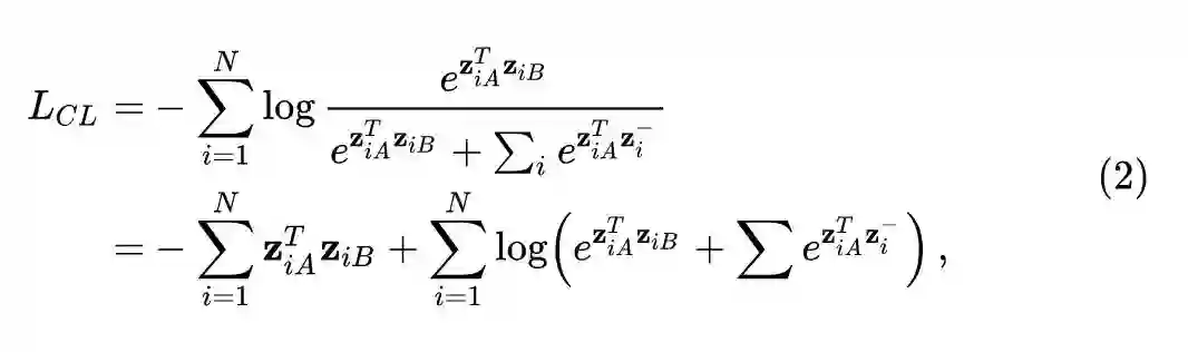 对于每张输入图片 ,有2个 positive pairs,分别为 (对应的特征分别是 )。Contracstive learning 范式的损失函数可以写成: