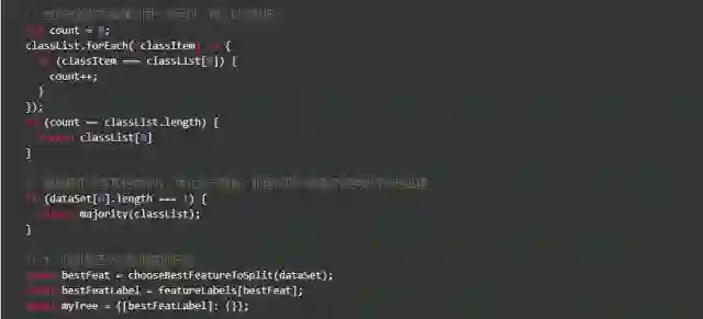划分的数据集中没有其他特征时,停止划分数据 —— 根据出现次数最多的类别作为目标分类。