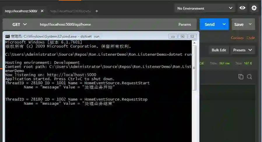 现在,我们尝试着 HomeController 去生产一个事件,看看效果