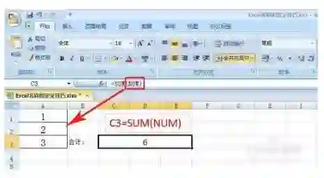 直接使用=sum(NUM) ,等价于sum(A1:A3)。