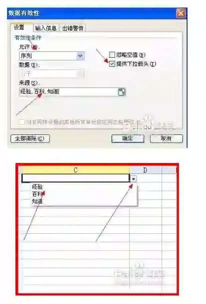 自定义下拉菜单(数据有效性)