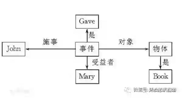 知识图谱(Knowledge Graph)的概念由谷歌 2012 年正式提出,旨在实现更智能的搜索引擎,并且于 2013 年以后开始在学术界和业界普及,并在智能问答、情报分析、反欺诈等应用中发挥重要作用。知识图谱本质上是一种叫做语义网络(semantic network)的知识库,即具有有向图结构的一个知识库,其中图的结点代表实体(entity)或者概念(concept),而图的边代表实体/概念之间的各种语义关系,比如说两个实体之间的相似关系。语义网络[1]是 20 世纪 50 年代末 60 年代初提出,代表性人物有 M. Ross Quillian 和 Robert F. Simmons。语义网络可以看成是一种用于存储知识的数据结构,即基于图的数据结构,这里的图可以是有向图,也可以是无向图。使用语义网络,可以很方便地将自然语言的句子用图来表达和存储,用于机器翻译[2]、问答系统[3]和自然语言理解[4]。下面就举一个例子,比如说,要表示 John gave a book to Mary 这样一句话,可以用下面这样的一个语义网络来表示: