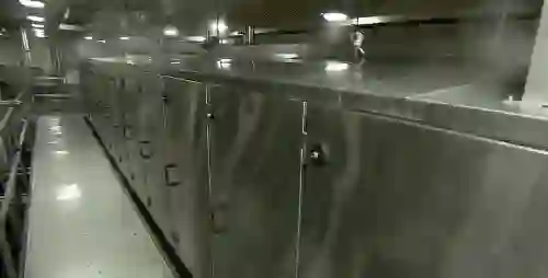 紧接着的传送带上,布有许多小孔,孔径则是由小逐渐变大,把西梅干按照大小进行分级,掉入下面相连的桶里进行收集。小的会加入麦片等,而大的西梅干就会成为我们的零食。