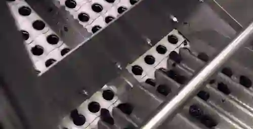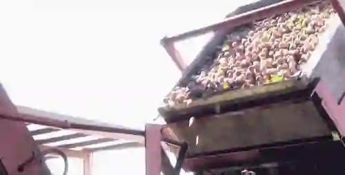 同时机器再不停的振动西梅们,让它们均匀的分布,使得落在托盘上的数量都差不多。