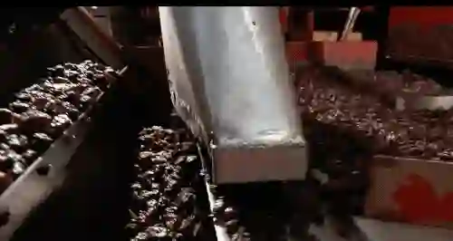 干燥好的梅子通过真空吸取器,靠负压去吸走梅干上的小树枝或是叶柄叶子。原理还是因为这些玩意儿比较轻,调整好吸取力度就好。