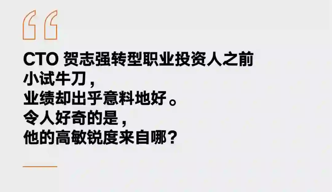 这算是CTO贺志强转型职业投资人之前小试牛刀,业绩却出乎意料地好。令人好奇的是,他的高敏锐度来自哪?