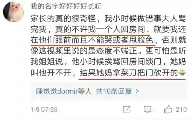 然而,中国人似乎只有长大了才有自我空间。甚至有人回忆,妈妈会用菜刀砍开门。简直就是噩梦!