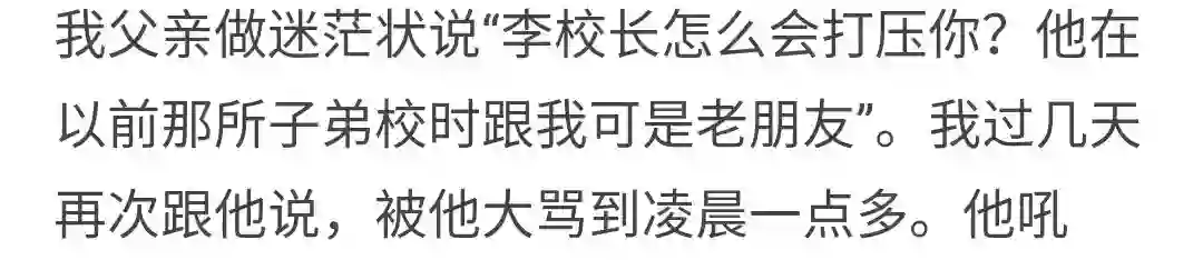 当然,李伟父亲所有的管教都是“为了他好”,包括打他,恐吓他,不准他学喜欢的文科,逼迫他学讨厌的物理,这一切都是出于爱他。