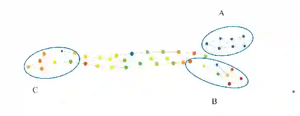 我们也可以看到,C 组似乎是 B 组的一个「较弱」形式,其中右上角的蓝色区域面积较小,下面区域的红色较弱。在左侧的「岛」上,C 组也显示出比 A 、B 组更强的红色着色。理解哪些基因参与了 A、B、C 三组右上角的强红色块将是非常有意思的。此外,研究哪些基因参与了左侧「岛」的表达也很有趣。了解这些基因组需要使用各种基于网络的生物学通路分析的工具。