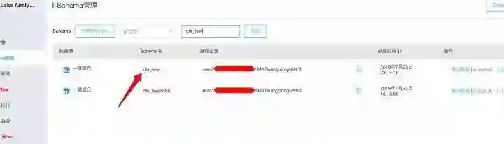 首先打开DLA的Schema管理页面(免费开通DLA服务: