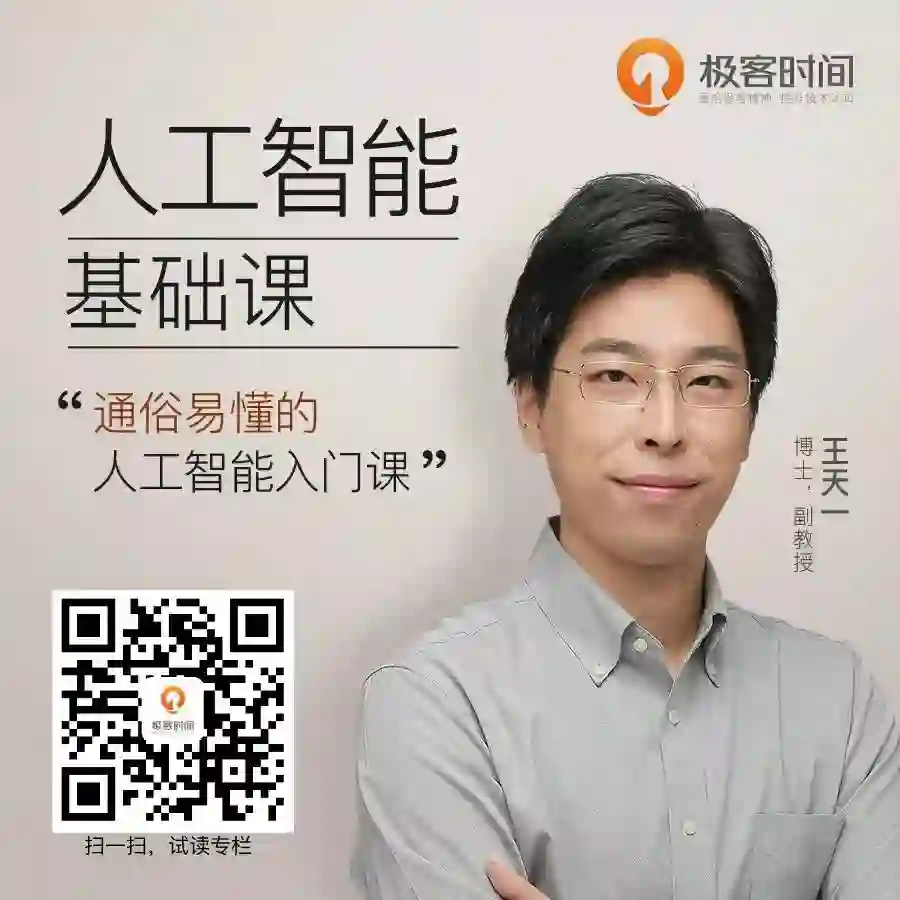 在《人工智能基础课》专栏里,王天一教授将结合自己的积累与思考,和你分享他对人工智能的理解,用通俗易懂的语言从零开始教你掌握人工智能的基础知识,梳理出人工智能学习路径,为今后深耕人工智能相关领域打下坚实的基础。