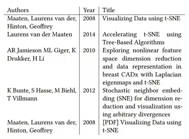 表 3:在Google Scholar中输入“t-sne”显示的前5个搜索结果。