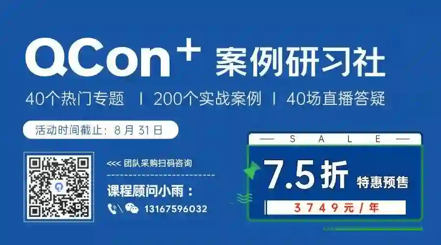 目前 QCon+ 案例研习社特惠预售,送来 8 月惊喜福利,畅学一年仅需 3749 元!(原价:4999 元 / 年)活动截止 8 月 31 日,快来扫码参与吧!了解更多活动内容也可点击【阅读原文】
