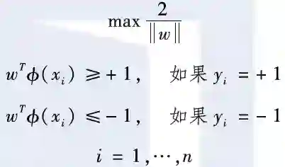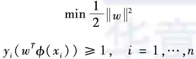 假设存在一个非线性映射函数Φ,可以帮我们把原始输入空间变换成高维非线性空间。我们的目的是在变换后的空间里,寻找一个线性超平面,它能够把所有正例和负例分开,并且距离该超平面最近的正例和负例之间的间隔最大。这个诉求可以用数学语言表述如下: