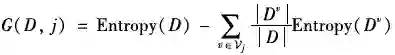 划分选择要解决的问题是如何根据某种准则在某个节点上把数据集里的样本分到它的一棵子树上。常用的准则有:信息增益、增益率、基尼系数等。其具体数学形式虽有差别,但是核心思想大同小异。这里我们就以信息增益为例进行介绍。所谓信息增益,指的是在某个节点上,用特征j对数据集D进行划分得到的样本集合的纯度提升的程度。信息增益的具体数学定义如下: