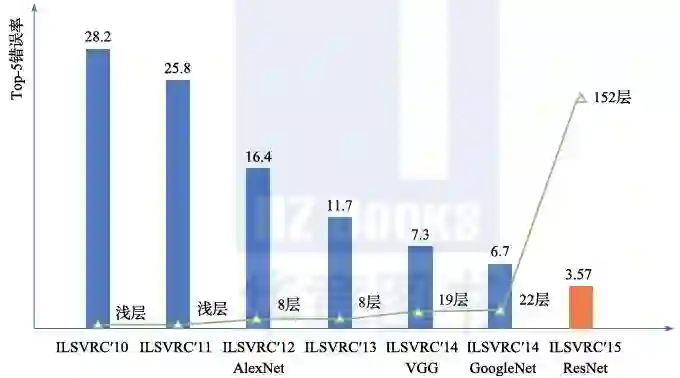 图2.13 卷积神经网络不断刷新ImageNet数据集的识别结果