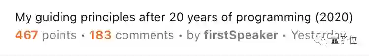 一位20年老程序员分享的编程经验突然火了,在Hacker News上,一天之内就收获了467热度。
