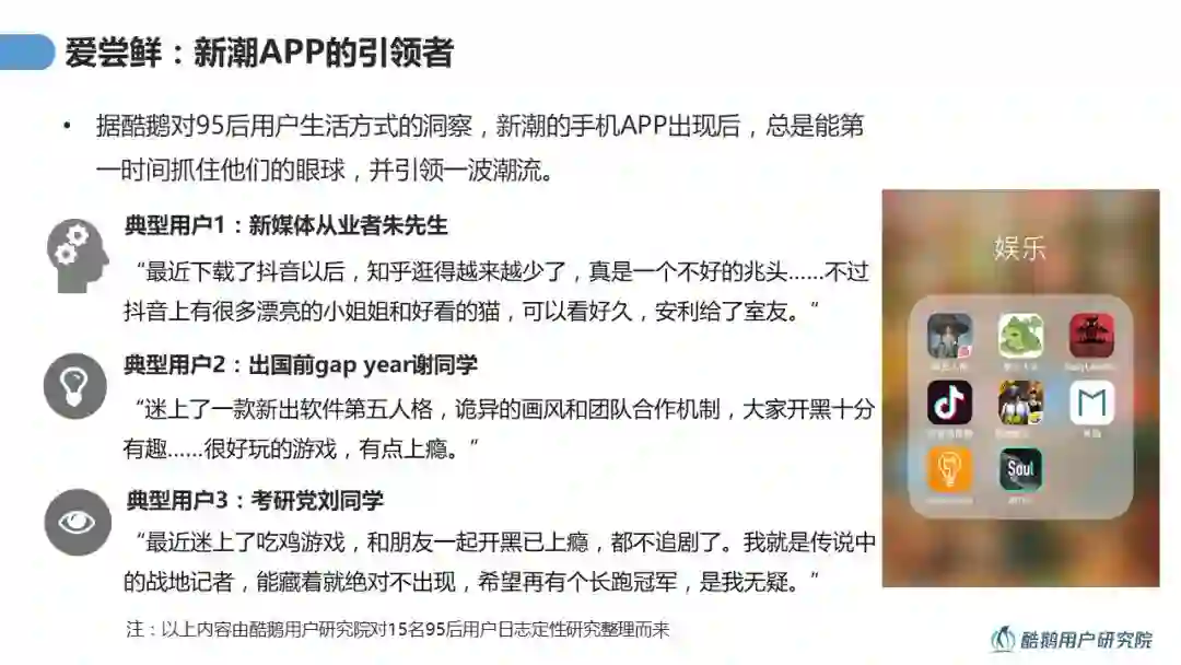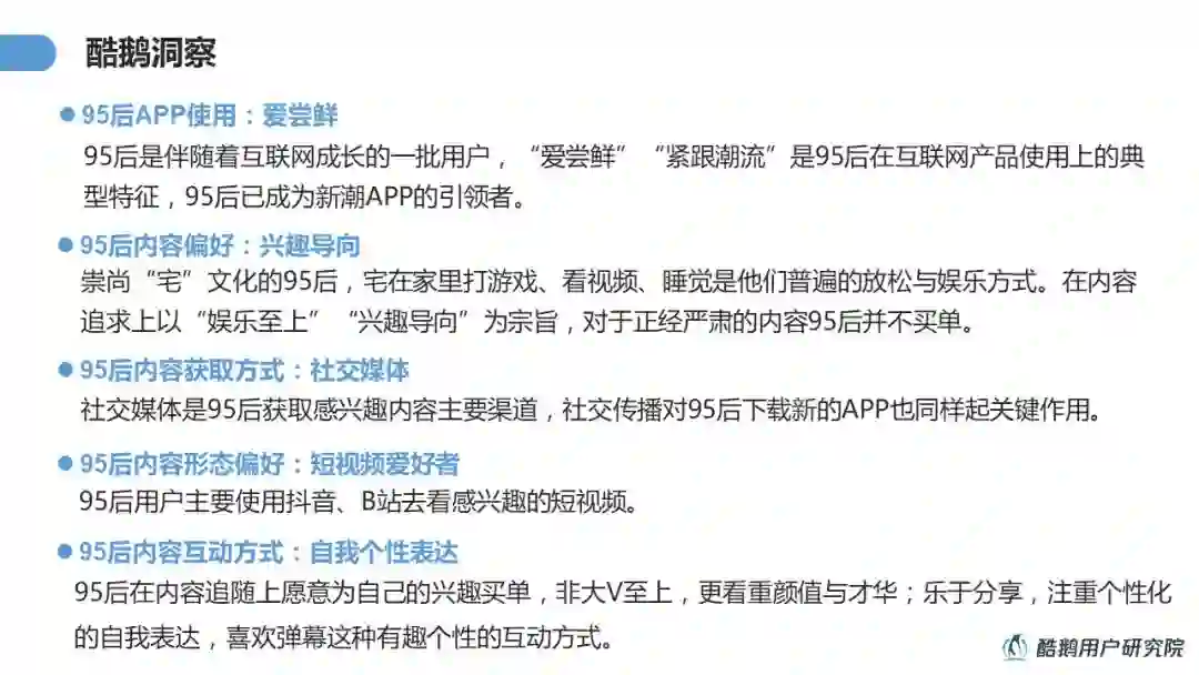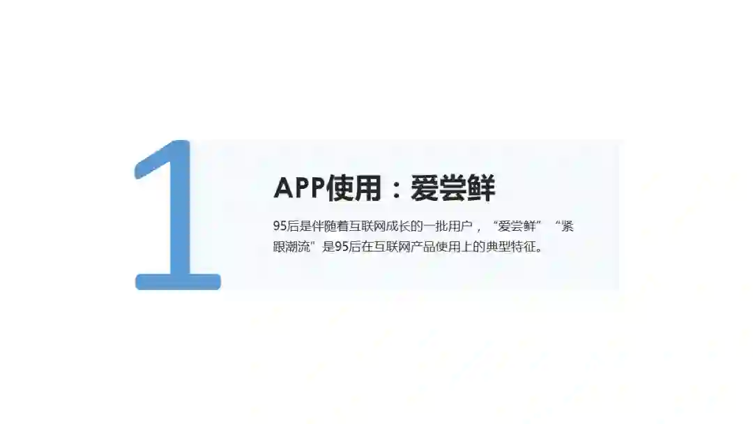 95后是伴随着互联网成长的一批用户,“爱尝鲜”“紧跟潮流”是95后在互联网产品使用上的典型特征。