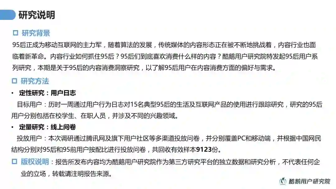 随着算法的发展,内容行业面临着新变革,竞争日趋激烈。传统的内容形态能否满足95后需求?95后喜欢什么样的内容?酷鹅用户研究院开展95后内容消费研究,发布《兴趣导向:95后内容消费洞察报告》为您揭晓。