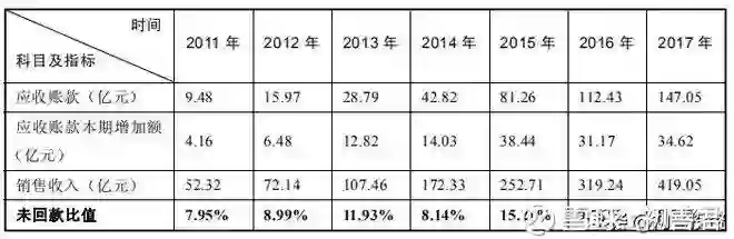 应收账款本期增加额与本期收入的比值(未回款比值)更能代表企业回款能力的强弱。本期未回款比值越大,表明企业在当年基本上没有收到多少现金,采用的是赊销方式做生意;未回款比值越小甚至为负值(应收账款本期增加额为负)代表企业的回款能力越强。此比值每年的趋势代表着企业每年回款能力的强弱变化。通过对企业各年度未回款比值的比较也可以知道企业在销售收款环节的能力大小。
