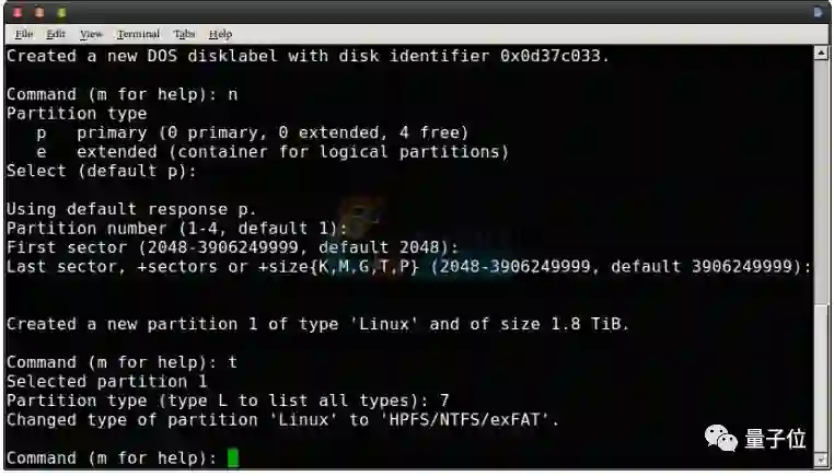 3、按照屏幕上的说明,从显示的消息“HPFS/NTFS/exFAT”中选择“exFAT”