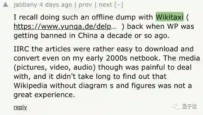 不过离线查阅维基百科在十多年前就已经出现了,有网友提到了Wikitaxi,但它并不会显示图片、视频和音频。